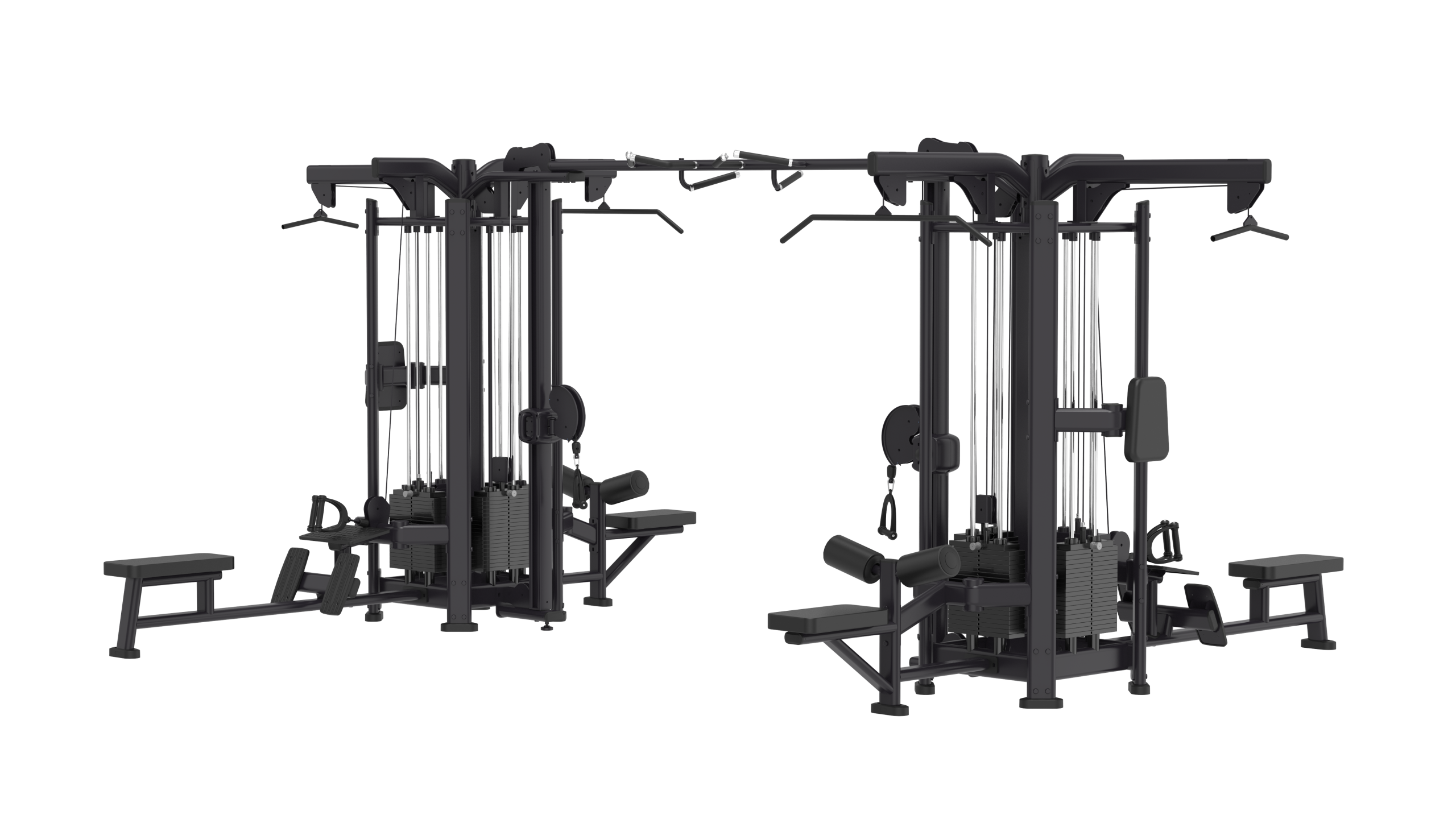 دستگاه مولتی جانگل ۸ ایستگاهی DHZ کد (TH89S)، قلب تپنده هر باشگاه بدنسازی بزرگ است. این سازه عظیم از اتصال دو برج ۴ ایستگاهی توسط یک پل فلزی مرتفع تشکیل شده است. نتیجه این طراحی، دسترسی همزمان ۸ ورزشکار به محبوبترین ایستگاههای سیمکش است: ۲ عدد زیربغل سیمکش (Lat Pulldown)، ۲ عدد قایقی (Low Row)، ۲ عدد پشت بازو (Triceps) و ۲ عدد قرقره قابل تنظیم (Adjustable Pulley).